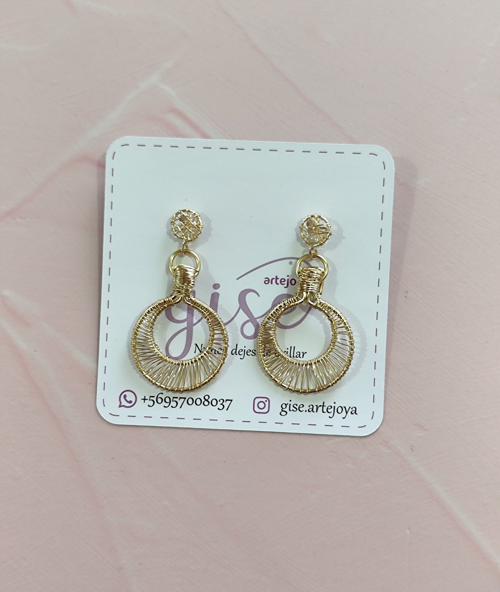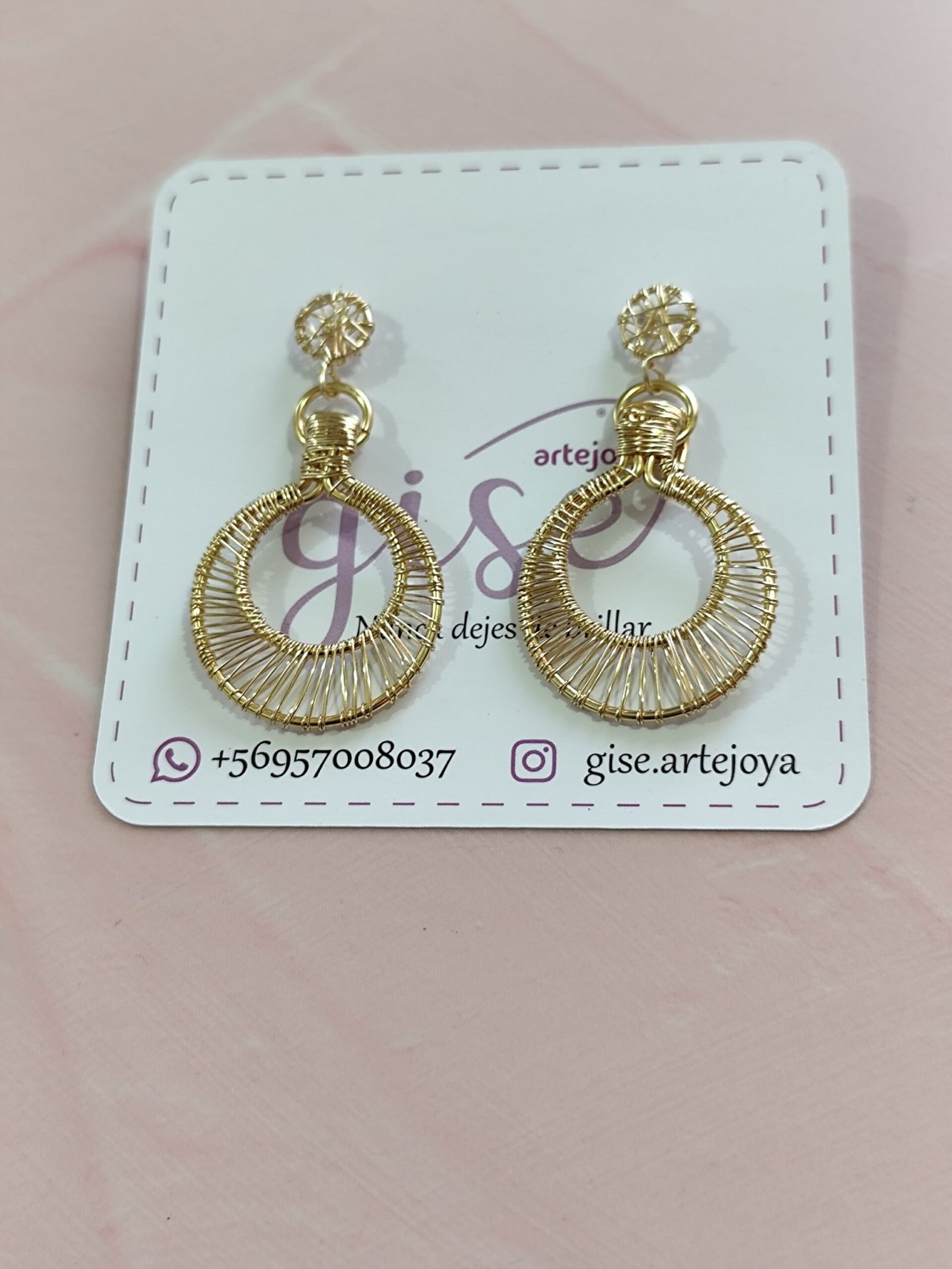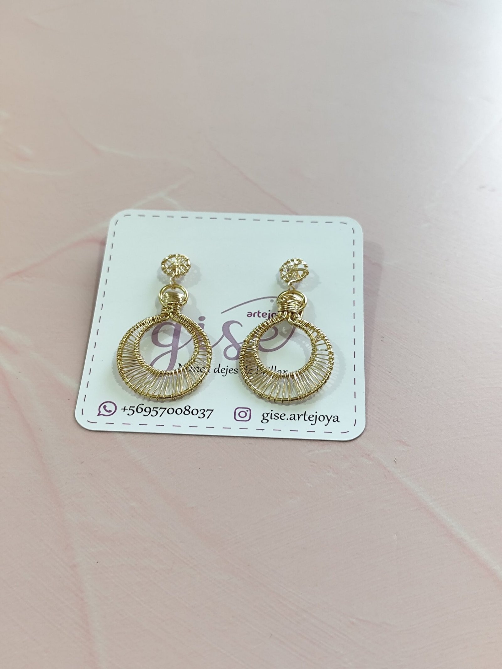 Maxi aros colgantes dorados, hechos a mano en técnica de alambrismo.